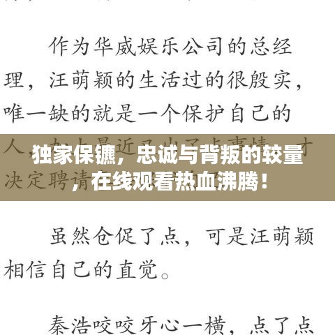 在這個(gè)數(shù)字化時(shí)代,影視作品的在線(xiàn)觀(guān)看已經(jīng)成為人們娛樂(lè)生活的一部分,動(dòng)作、懸疑、劇情片更是吸引了無(wú)數(shù)觀(guān)眾的眼球,我們將聚焦于一部充滿(mǎn)緊張刺激與深刻內(nèi)涵的作品——《獨(dú)家保鑣》,本文將帶領(lǐng)大家走進(jìn)這部影片的世界,一同探討忠誠(chéng)與背叛的較量。